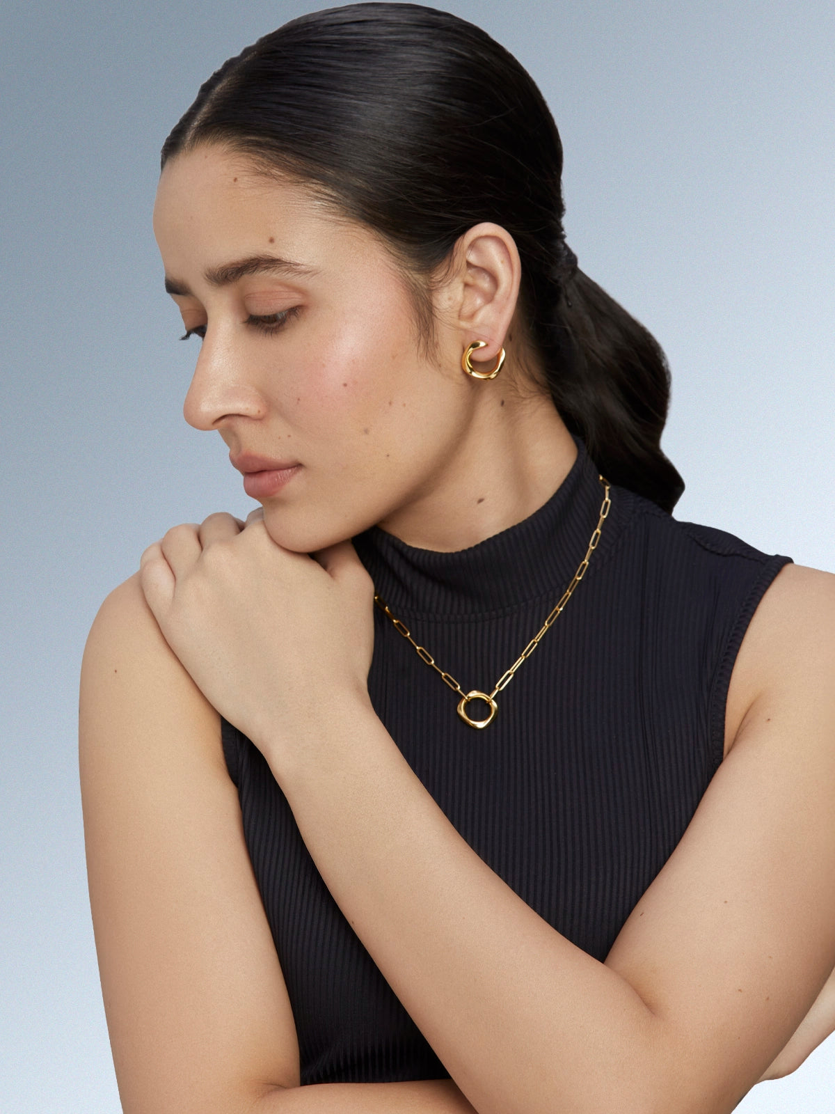 Squircle Pendant With Paperclip Chain In Gold Vermeil